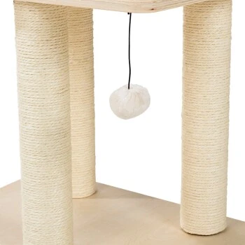 Alle Katzen haben ein natürliches Kratzbedürfnis und brauchen einen Ort für ihre Krallenpflege. Damit sich Ihre Katze gar nicht erst daran gewöhnt, ihre Krallen an Ihrem Mobiliar zu wetzen, bieten Sie ihr den AniOne Kratzbaum Lilly im modernen Holzdesign als perfekte Alternative. An den fünf Sisalstämmen kann ausgiebig gekratzt werden und Ihre Einrichtung bleibt vor Kratzspuren verschont. Die zwei Plüschbälle an elastischen Seilen sorgen für zusätzlichen Spielspaß. Der Kratzbaum von AniOne ist außerdem der ideale Rückzugsort. Die zwei Plattformen laden zum langen Verweilen und Entspannen ein. Das Plüschkissen und -Bettchen sind abnehmbar.