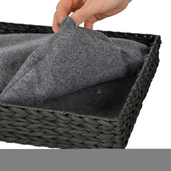 - abnehmbare und bei 30° waschbare Liegekissen aus dunkelgrauem Filzstoff