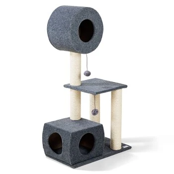 Alle Katzen haben ein natürliches Kratzbedürfnis und brauchen einen geeigneten Ort für ihre Krallenpflege. Damit sich Ihre Katze gar nicht erst daran gewöhnt, ihre Krallen an Ihrem Mobiliar zu wetzen, bieten Sie ihr den AniOne Kratzbaum Padme als perfekte Alternative. Die Sisalstämme bieten Ihrer Samtpfote die Möglichkeit, sich täglichen ihrer Krallenpflege zu widmen. Der Kratzbaum von AniOne ist außerdem der ideale Rückzugsort. Die Plattform und die 2 Höhlen sind mit Polyesterfilz ummantelt und laden zum Entspannen, Schlafen und Verstecken ein.