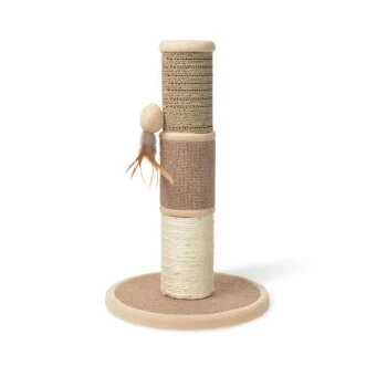 Die AniOne Kratzsäule Lina Kaigo verfügt über einen Teppichboden und Teppichpfosten und ist zudem mit starkem Sisal umwickelt. Die Papierpfosten sind auswechselbar. Außerdem bietet die Kratzsäule Lina Kaigo mit ihrem Federspielzeug für jede Menge Spielspaß.